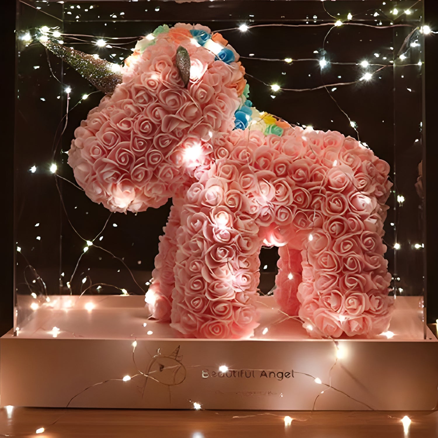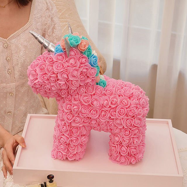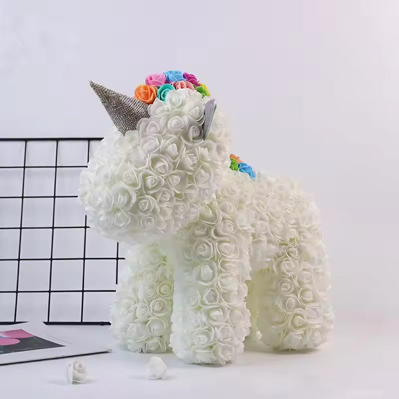 The Rose Unicorn is crafted from soft, high-quality sponge roses and durable materials, designed to feel gentle, look beautiful, and last for years.