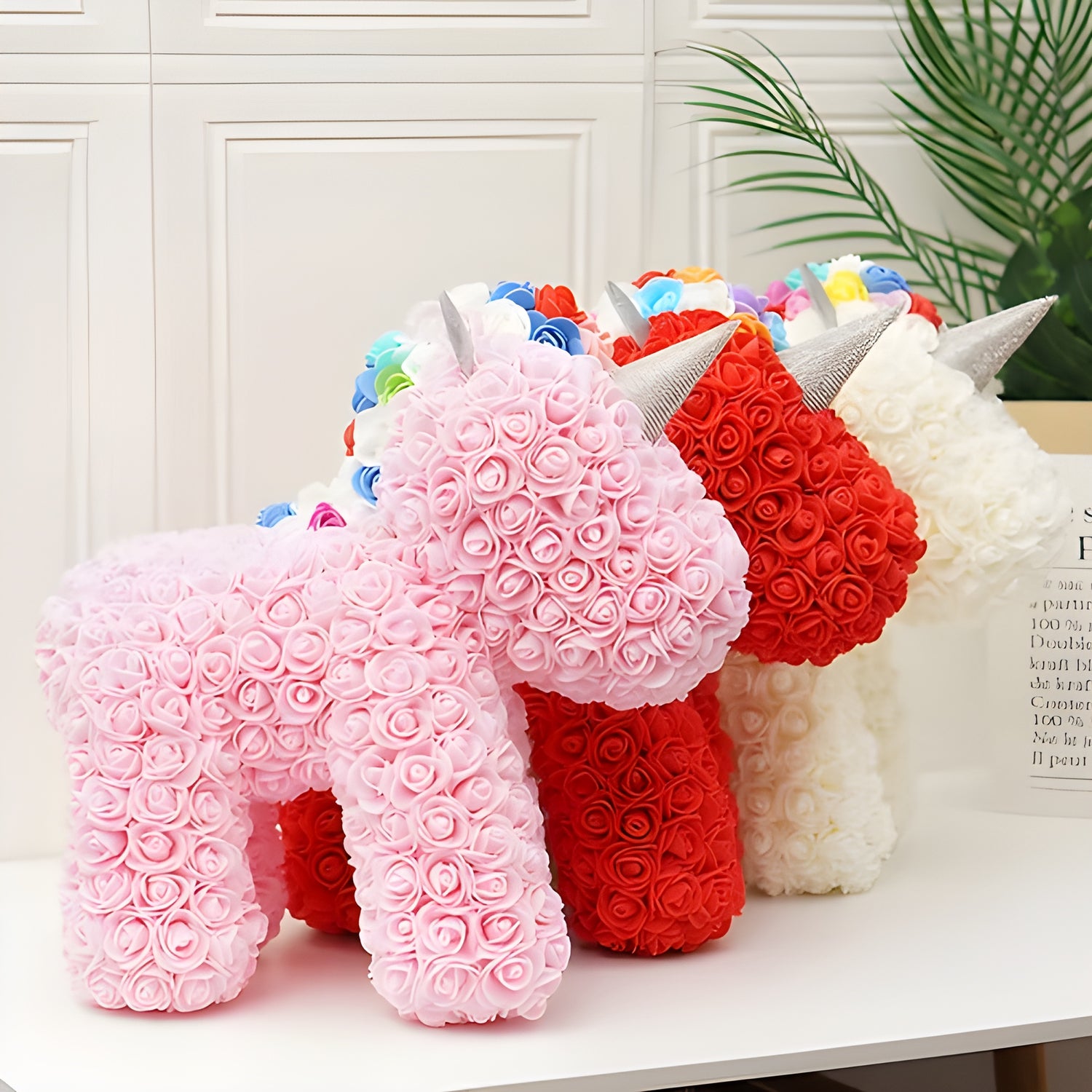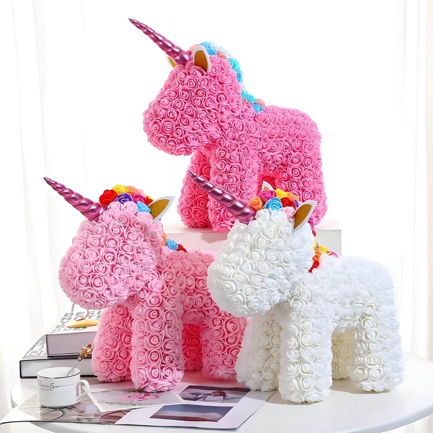 These rose unicorns bring charm and gentle romance to any room, their soft petals creating a dreamy decorative touch that fills the space with warmth and wonder.